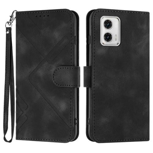 Funda de Cuero para Motorola Moto G73 con Textura Line Pattern para Teléfono (Negro)