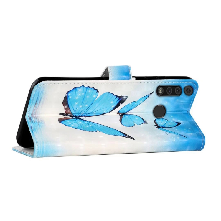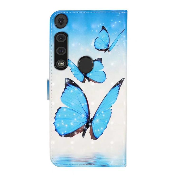 Funda de Cuero para Motorola Moto G8 Play con Dibujo 3D en Relieve al Óleo (3 Mariposas)