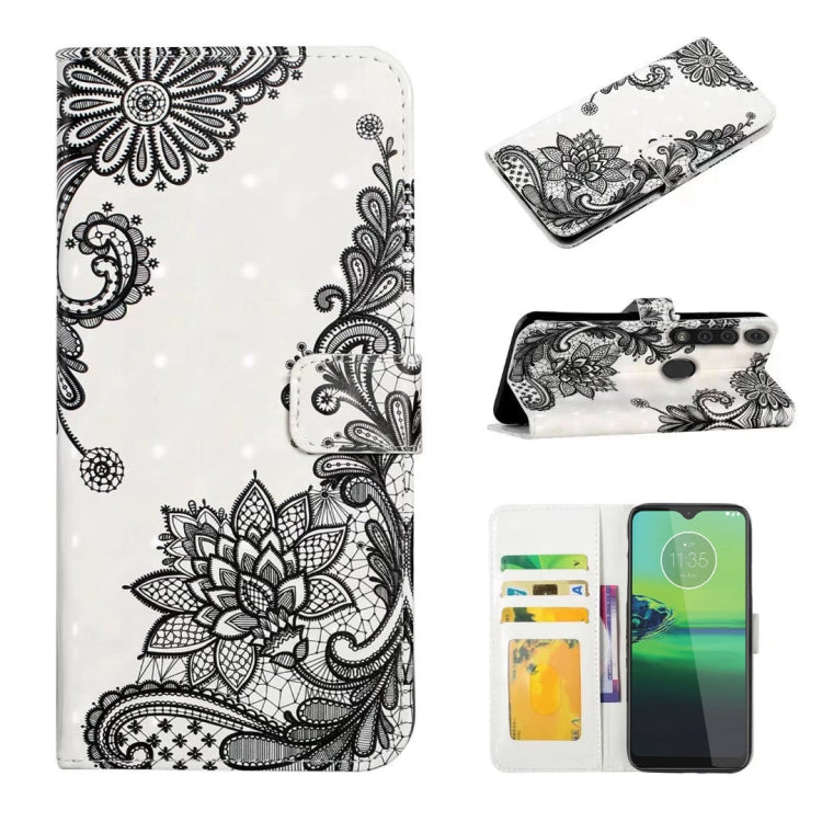 Funda de Cuero para Motorola Moto G8 Play con Dibujo 3D en Relieve al Óleo (Flor de Encaje)