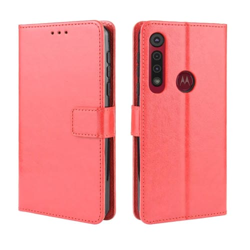 Funda de Cuero para Motorola Moto G8 Play con Tapa Horizontal, Soporte, Ranuras para Tarjetas y Marco de Fotos (Rojo)
