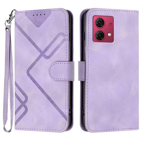 Funda de Cuero para Motorola Moto G84 5G con Sensación de Piel y Patrón de Líneas (Púrpura Claro)