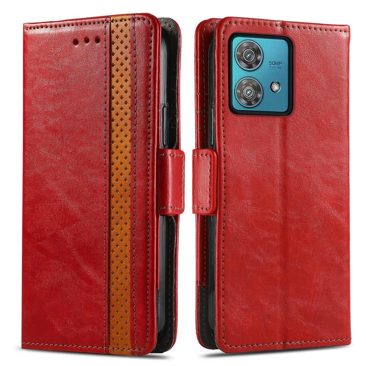Funda de Cuero Caseneo Splicing para Motorola Moto G84 con Hebilla Magnética Dual (Rojo)