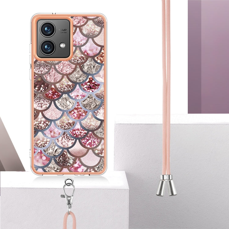 Estuche para Motorola Moto G84 TPU Imd con Galvanoplastia y Cordón (Escamas Rosadas)