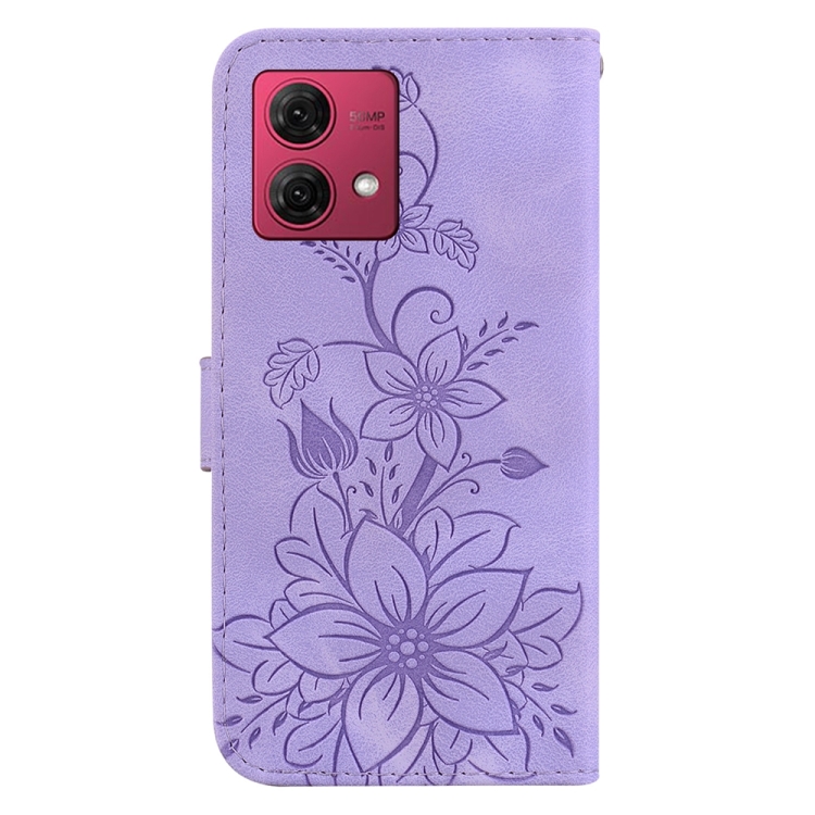 Funda de Cuero para Motorola Moto G84 con Relieve Lily (Púrpura)