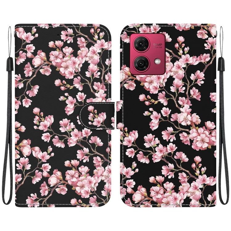 Funda de Cuero para Motorola Moto G84 con Dibujo Coloreado y Textura de Cristal (Plum Bossom)