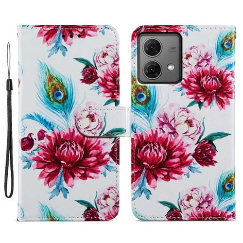Funda de Cuero para Motorola Moto G84 con Tapa Horizontal y Patrón Pintado (Flor de Pavo Real)