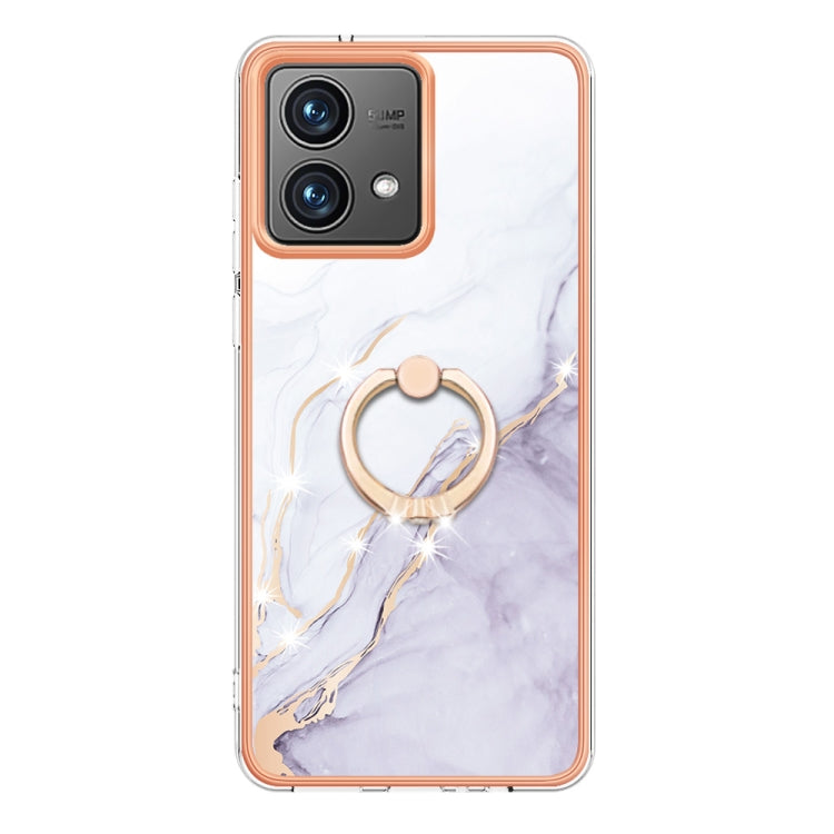 Funda TPU para Motorola Moto G84 con Galvanoplastia Mármol, Soporte para Anillo (Blanco)