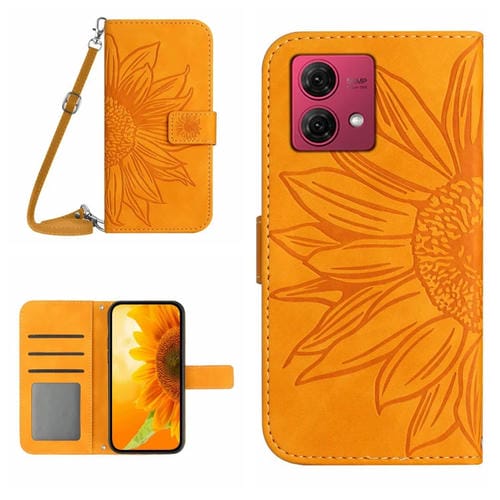 - 1x Funda de Cuero Motorola Moto G84 Ht04 Skin Feel con Tapa En Relieve y Cordón (Amarillo)
