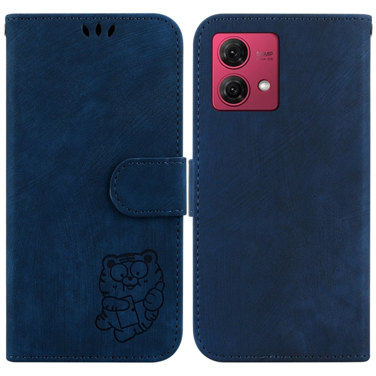 Funda de Cuero en Relieve para Motorola Moto G84 Little Tiger (Azul Oscuro)