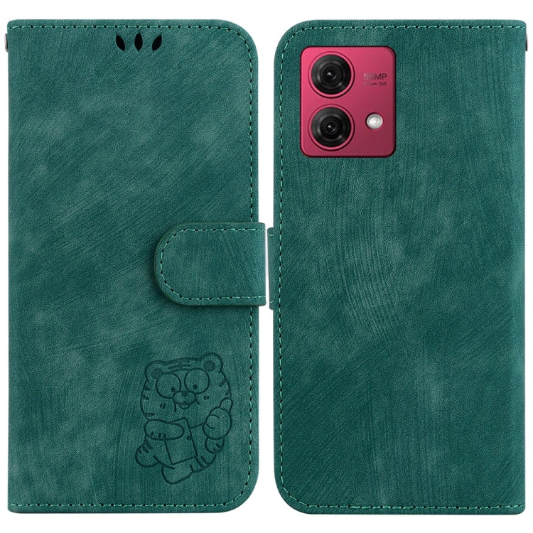 Funda de Cuero en Relieve para Motorola Moto G84 Little Tiger (Verde)
