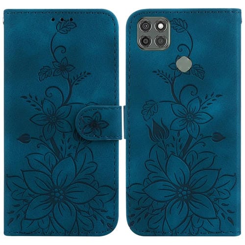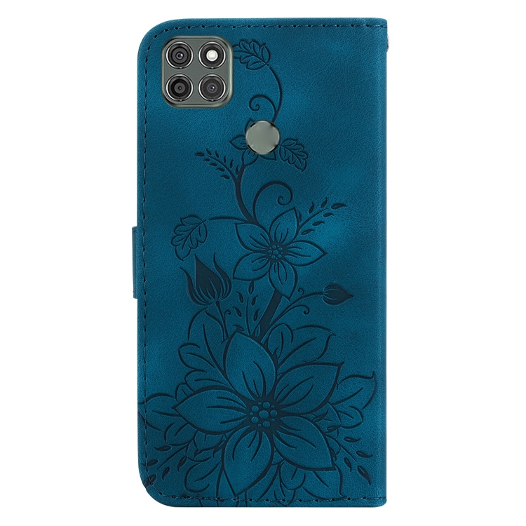 - 1x Funda de Cuero en Relieve para Motorola Moto G9 Power Lily (Azul Oscuro)