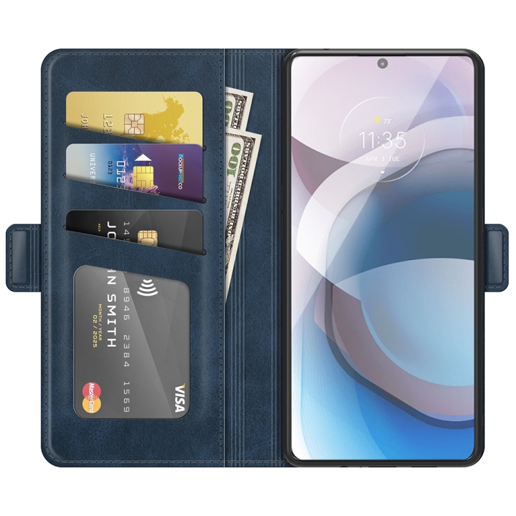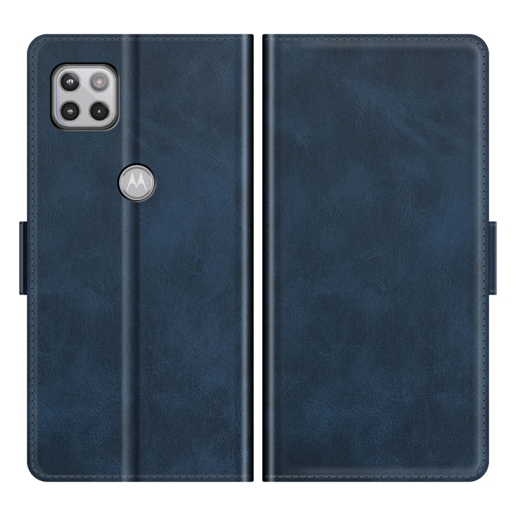 Para MOTOROLA MOTO ONE 5G ACE con hebilla magnética de doble lado Caja de cuero de la chancleta horizontal con soporte y ranuras para tarjetas (azul oscuro)