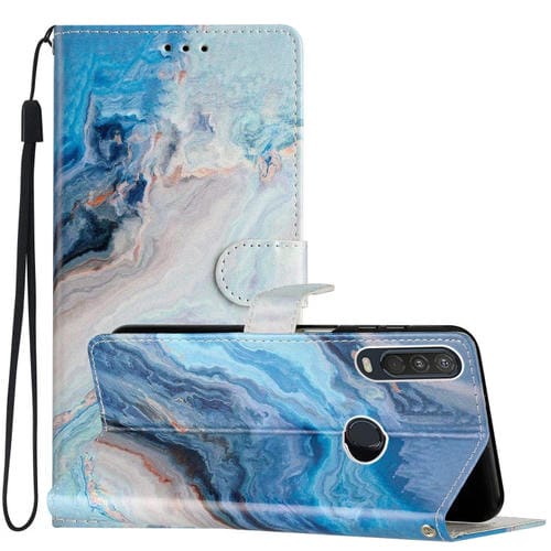 Estuche para Motorola Moto One Action de Cuero con Dibujo Coloreado (Mármol Azul)
