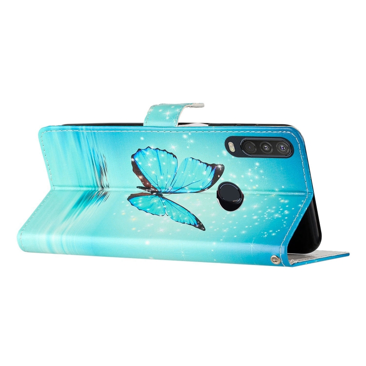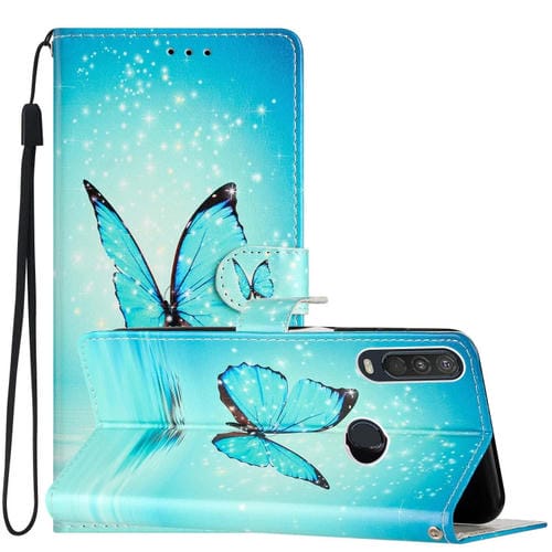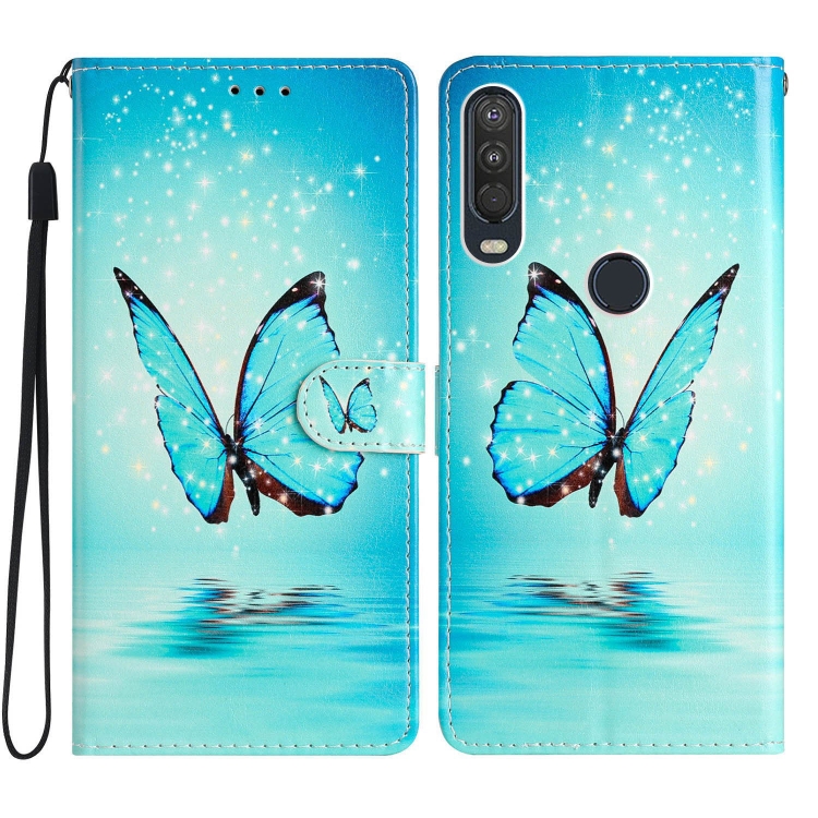 - 1x Funda de Cuero para Motorola Moto One Action con Dibujo Coloreado (Mariposa Azul)