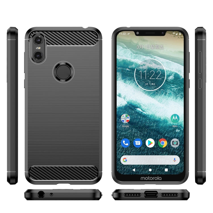 Funda de Teléfono TPU Motorola Moto One Fibra de Carbono Textura Cepillada (Negro)