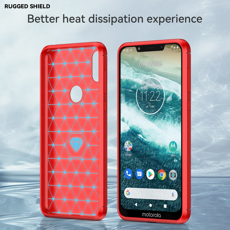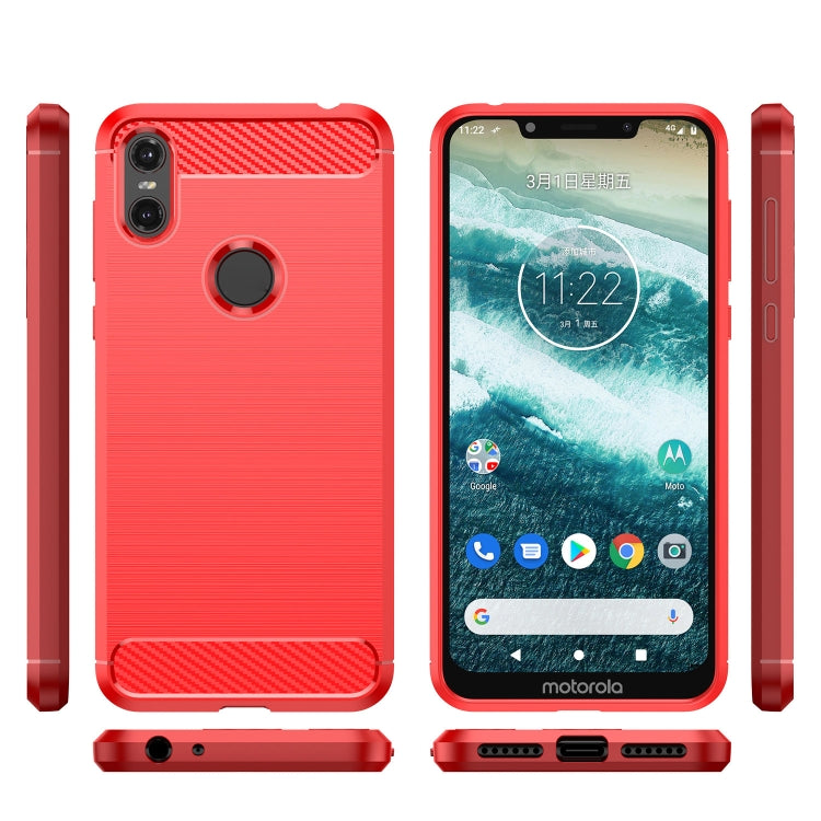Funda de Teléfono Motorola Moto One TPU Fibra de Carbono Textura Cepillada (Rojo)