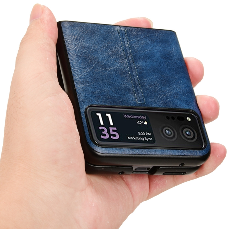 • 1x Funda para Motorola Moto Razr 40 con Tapa Trasera de costura y patrón de vaca (Azul)