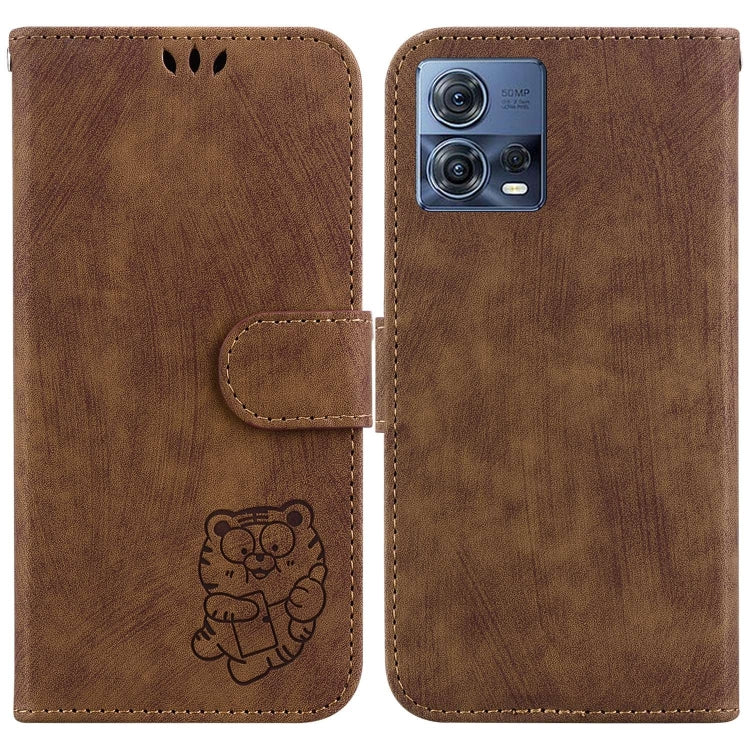 Funda para Motorola Moto S30 Pro 5G de Cuero con Relieve Little Tiger (Marrón)