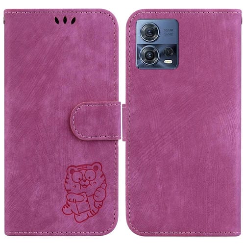Funda para Motorola Moto S30 Pro 5G de Cuero con Relieve Little Tiger (Rojo Rosa)