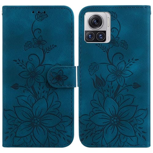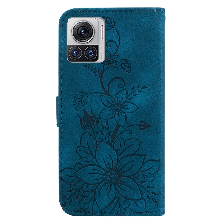For Motorola Moto X30 Pro/Edge 30 Ultra 5G Lily Embossed Leather Phone Case (Dark Blue)