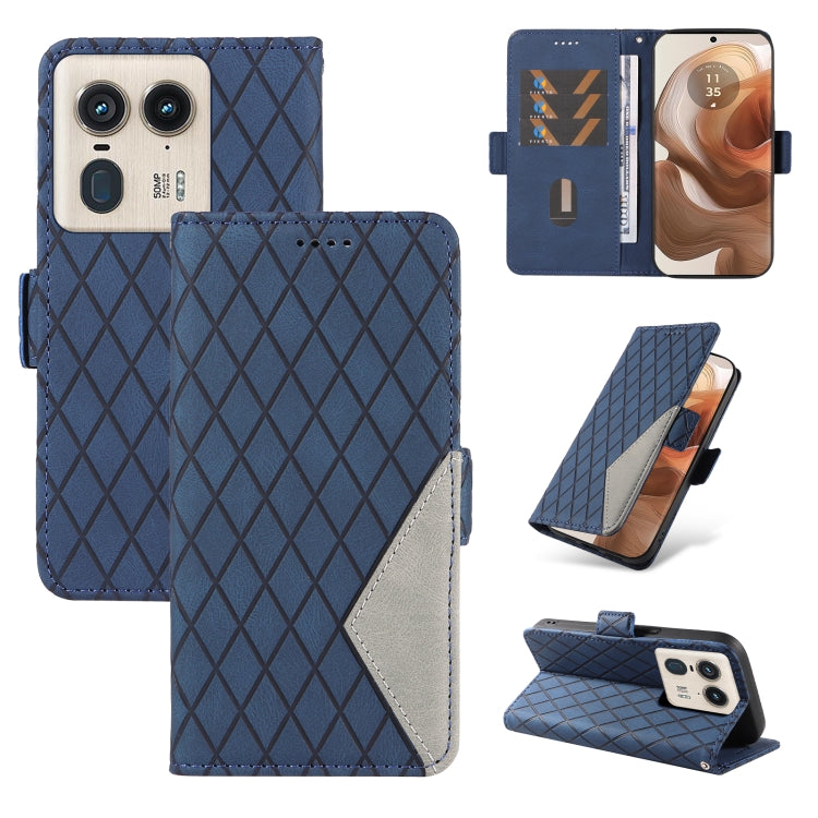 Funda de Cuero para Motorola Moto X50 Ultra con Entramado Rómbico de Dos Colores (Azul)