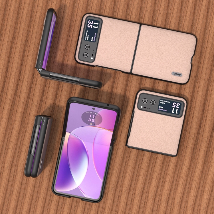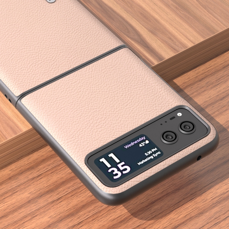 - 1x Funda de Teléfono Motorola Razr 40 Abeel Cuero Genuino Textura Litchi + PC (Oro Rosa)