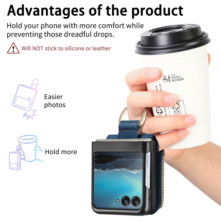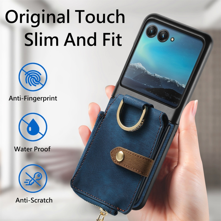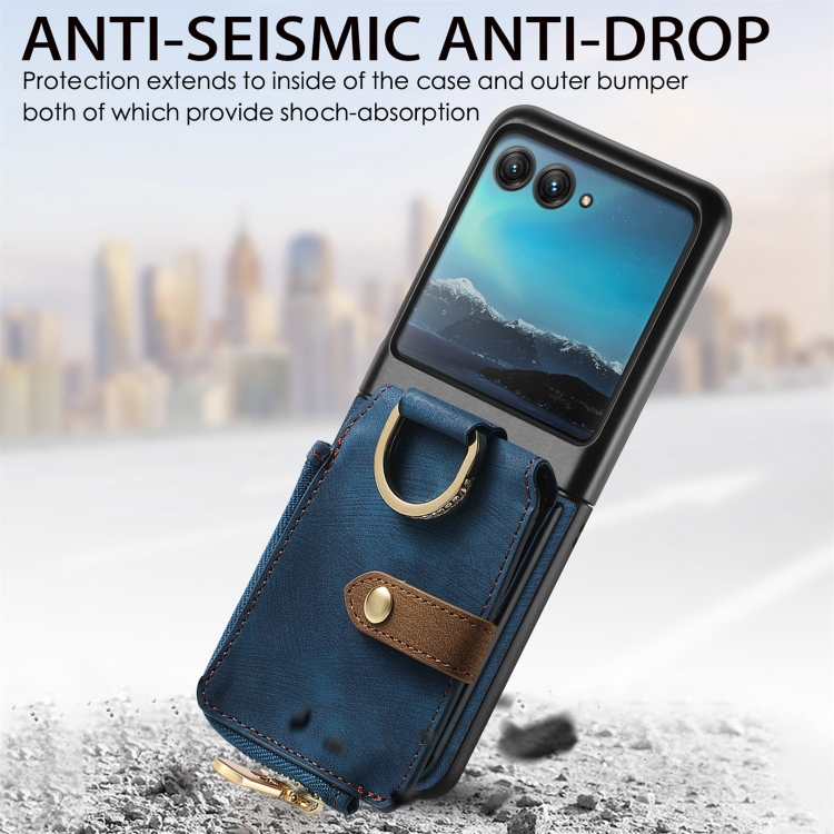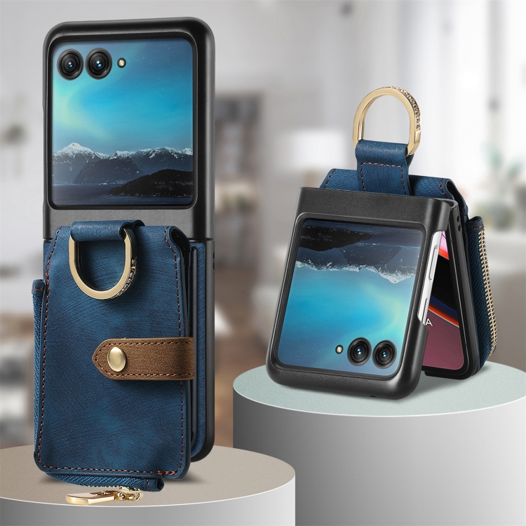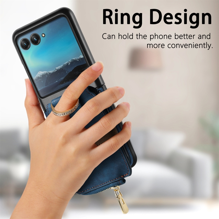 Funda para Motorola Razr 40 con Billetera, Anillo y Sensación de Piel (Azul)