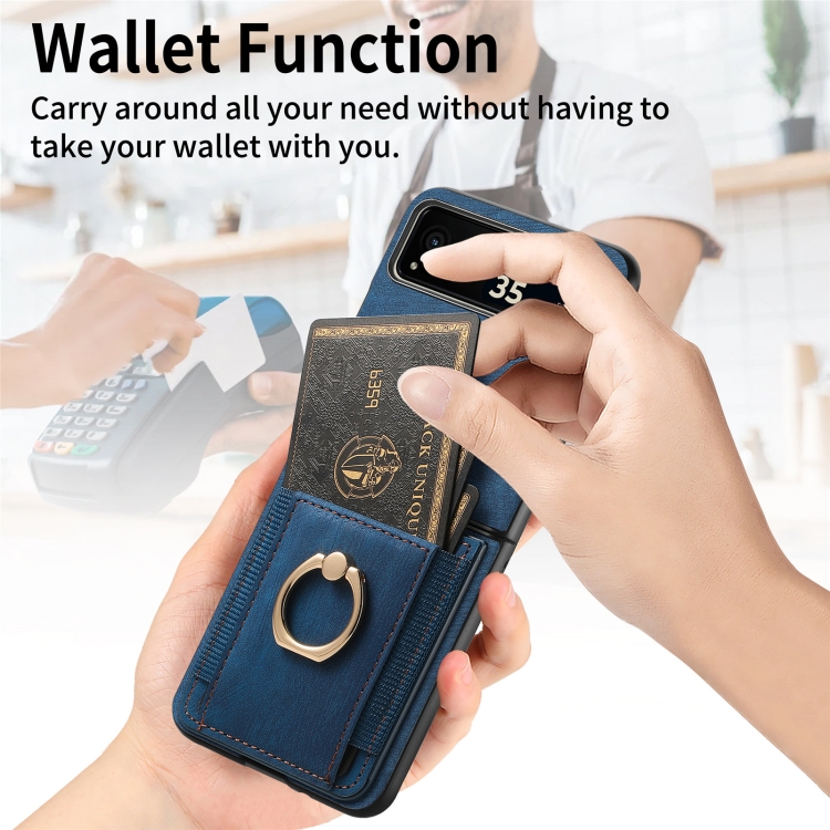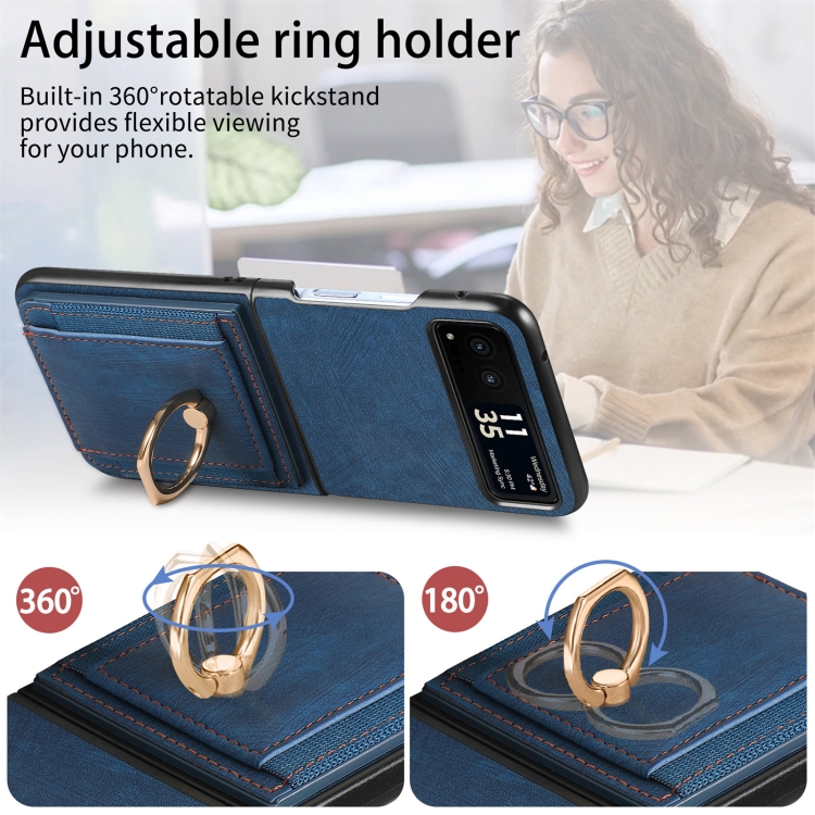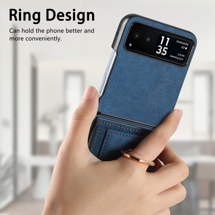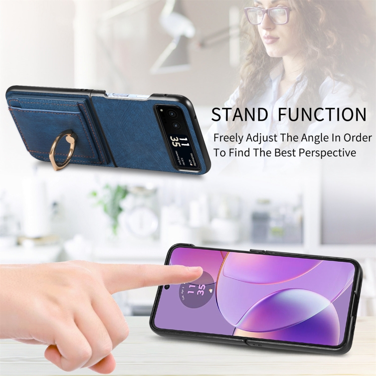 Funda para Motorola Razr 40 con Billetera, Múltiples Tarjetas y Anillo (Azul)