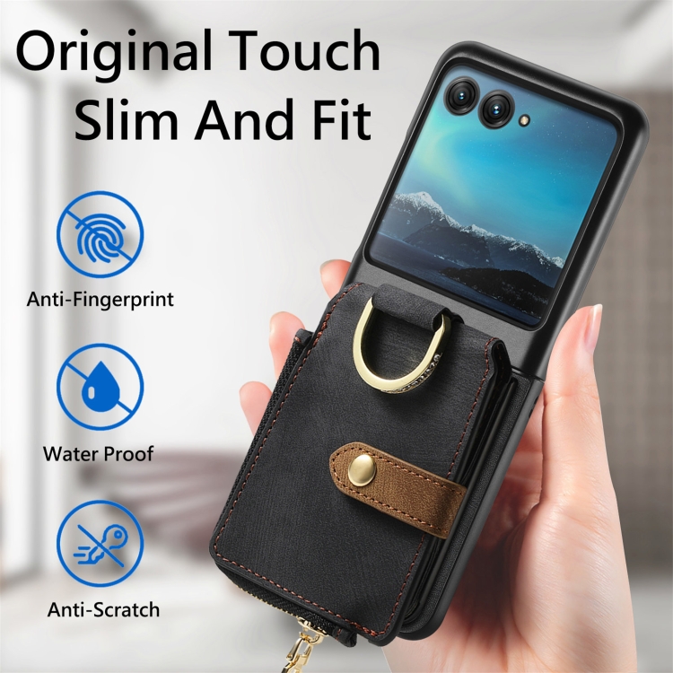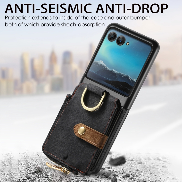 Funda para Motorola Razr 40 con Billetera, Múltiples Tarjetas y Anillo (Negro)