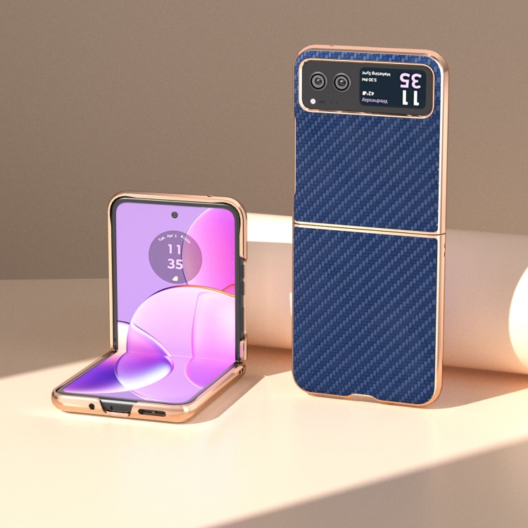Funda para Motorola Razr 40 con Textura de Fibra de Carbono y Galvanoplastia Nano (Azul Marino)