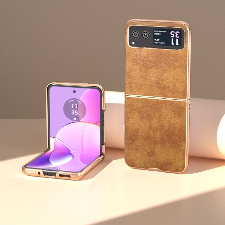 • 1x Funda para Motorola Razr 40 Retro Litchi Texture PU Phone Case (Marrón)