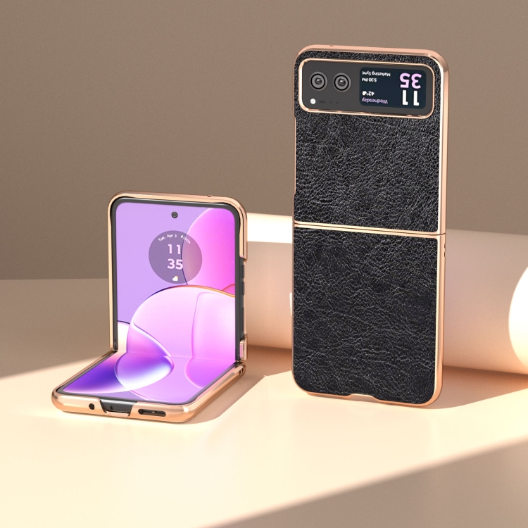 Funda para Motorola Razr 40 Retro PU con Textura Litchi para Teléfono (Negro)