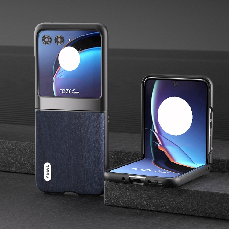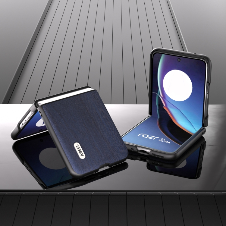 Funda de Teléfono Motorola Razr 40 Ultra Abeel PU con Textura de Madera (Azul)