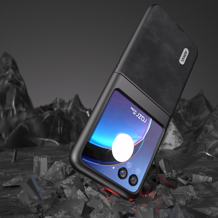 Funda de Teléfono para Motorola Razr 40 Ultra Abeel PU con Textura de Piel de Vaca (Negro)