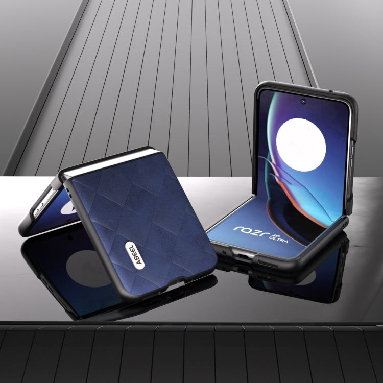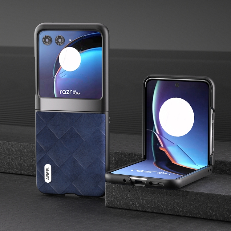 • 1x Funda para Motorola Razr 40 Ultra Abeel Weave Plaid Pu Phone Case (Azul)