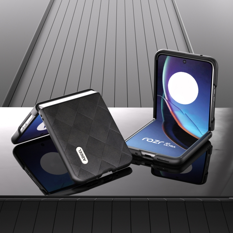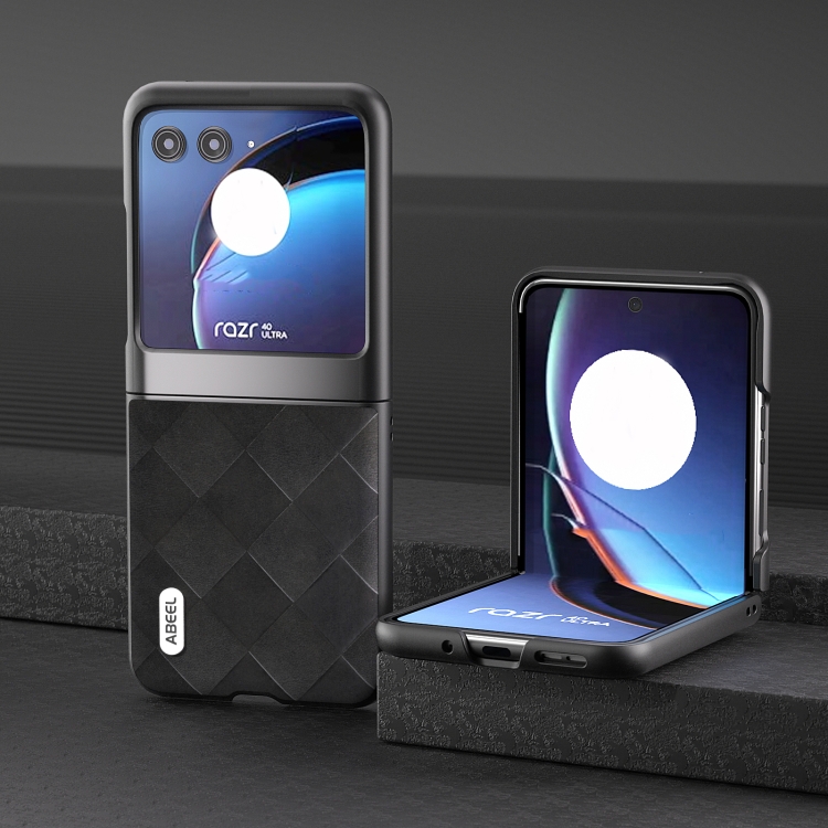 Funda para Motorola Razr 40 Ultra Abeel Weave Plaid PU Phone Case (Negro)