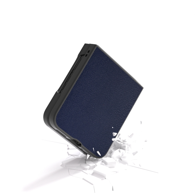Funda de Cuero PU para Motorola Razr 50 Ultra con Marco Negro y Cobertura Total (Azul Oscuro)
