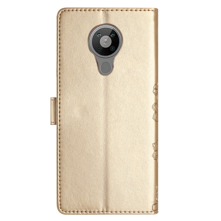 Funda para Nokia 5.4 Cherry Blossom Butterfly Skin Feel de PU en Relieve (Oro)