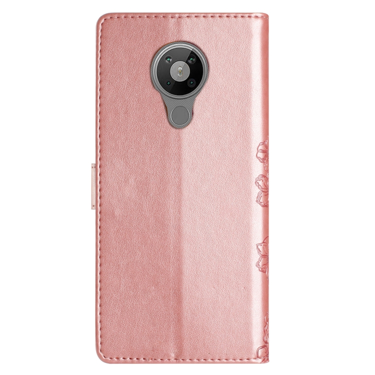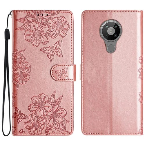 Funda para Nokia 5.4 Cherry Blossom Butterfly Skin Feel de PU en Relieve (Oro Rosa)