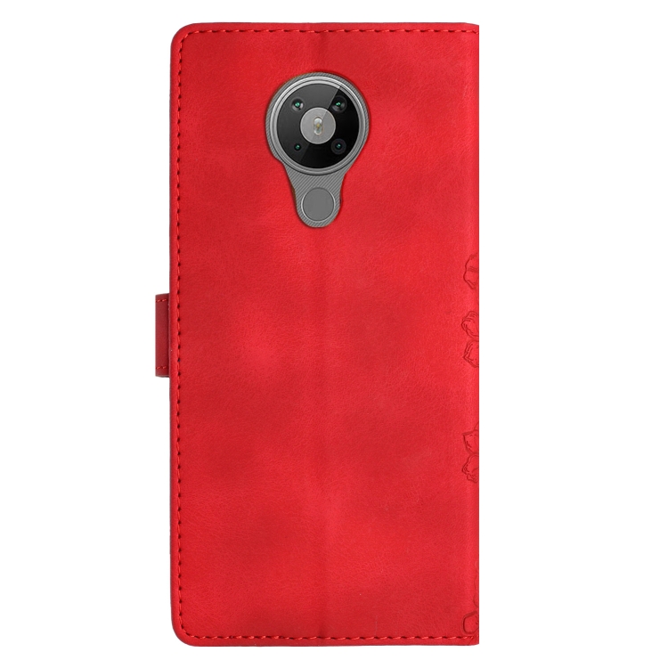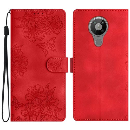 Funda para Nokia 5.4 Cherry Blossom Butterfly Skin Feel de PU en Relieve (Rojo)