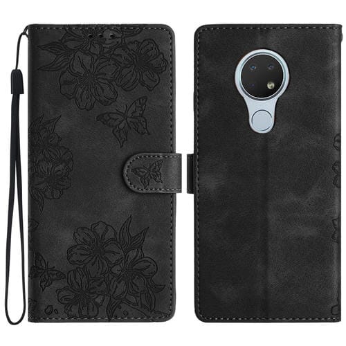 Funda para Nokia 6.2/7.2 Cherry Blossom Butterfly Skin Feel PU en Relieve (Negro)