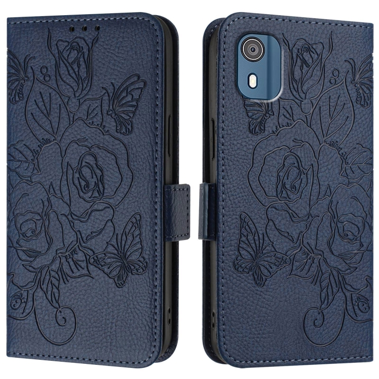Funda para Nokia C02 de Cuero Antirrobo RFID con Relieve Rosa (Azul Oscuro)