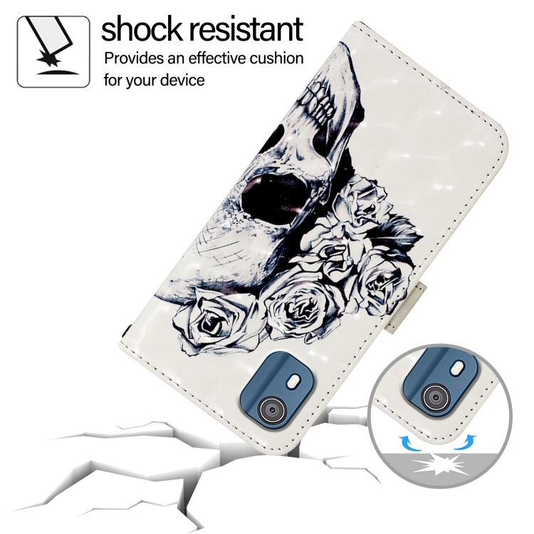 Funda para Nokia C02 de Cuero con Tapa Horizontal y Pintura 3D Calavera