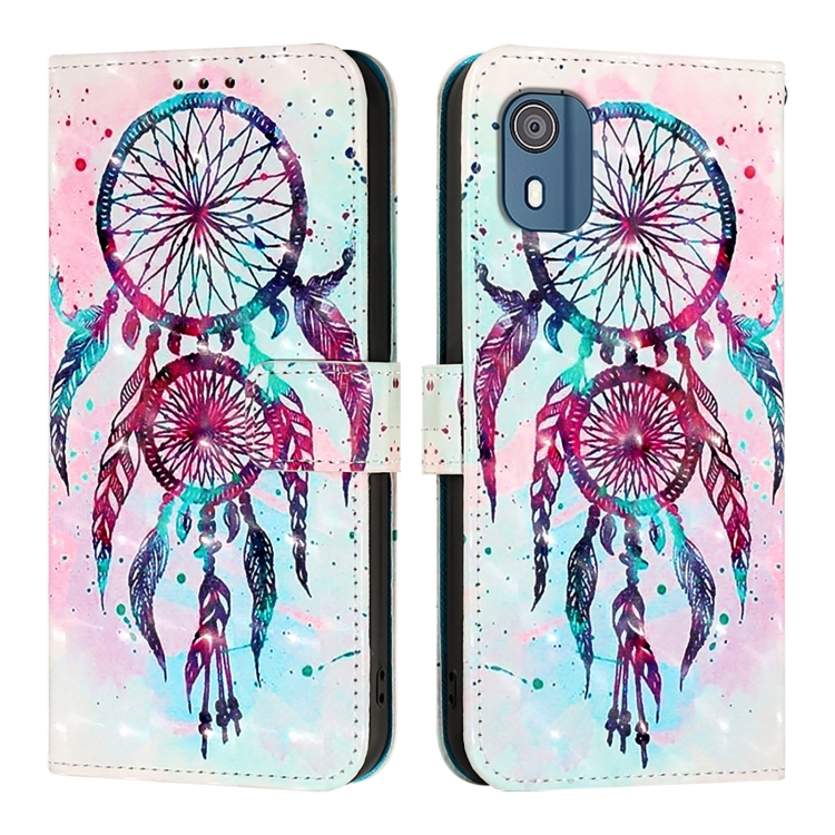 Funda para Nokia C02 de Cuero con Tapa Horizontal y Pintura 3D (Campanas de Viento)