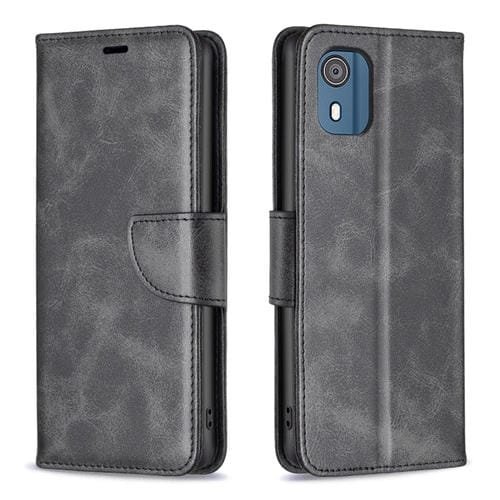 Funda de Cuero para Nokia C02 Piel de Cordero Textura Pure Color Flip (Negro)