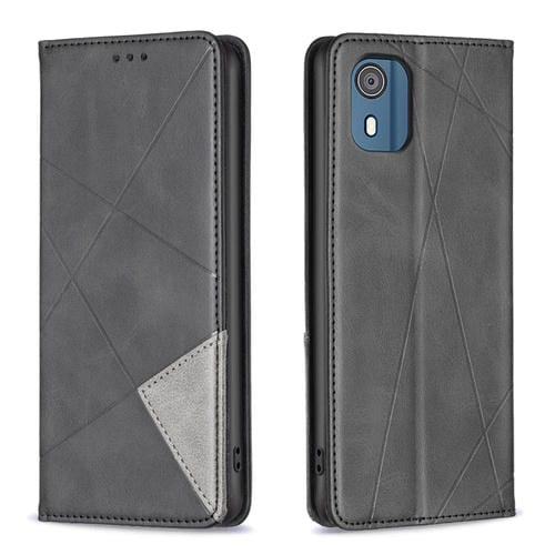 Funda para Nokia C02 Rhombus Texture con Cierre Magnético en Cuero (Negro)