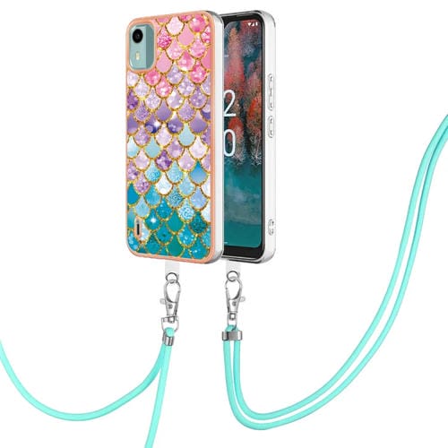 Estuche para Nokia C12 TPU con Galvanoplastia y Cordón (Escamas de Colores)