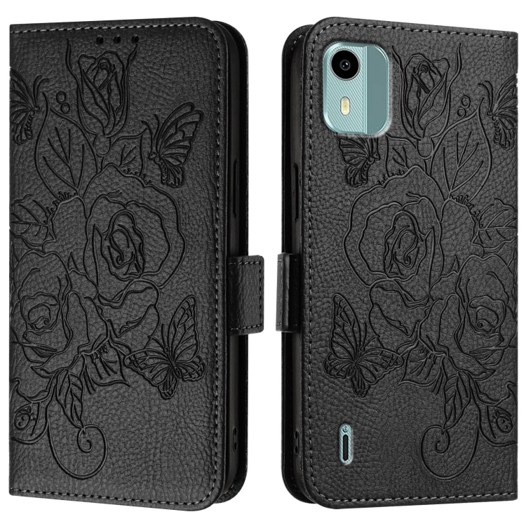 Funda para Nokia C12 de Cuero Antirrobo RFID con Relieve Rosa (Negro)