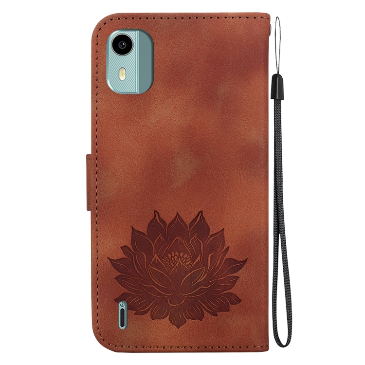 Funda de Cuero en Relieve para Nokia C12 Lotus para Teléfono (Marrón)