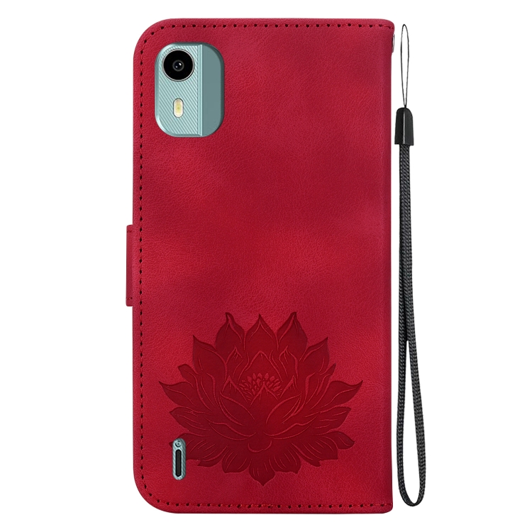 Funda de Cuero en Relieve para Nokia C12 Lotus Teléfono (Rojo)